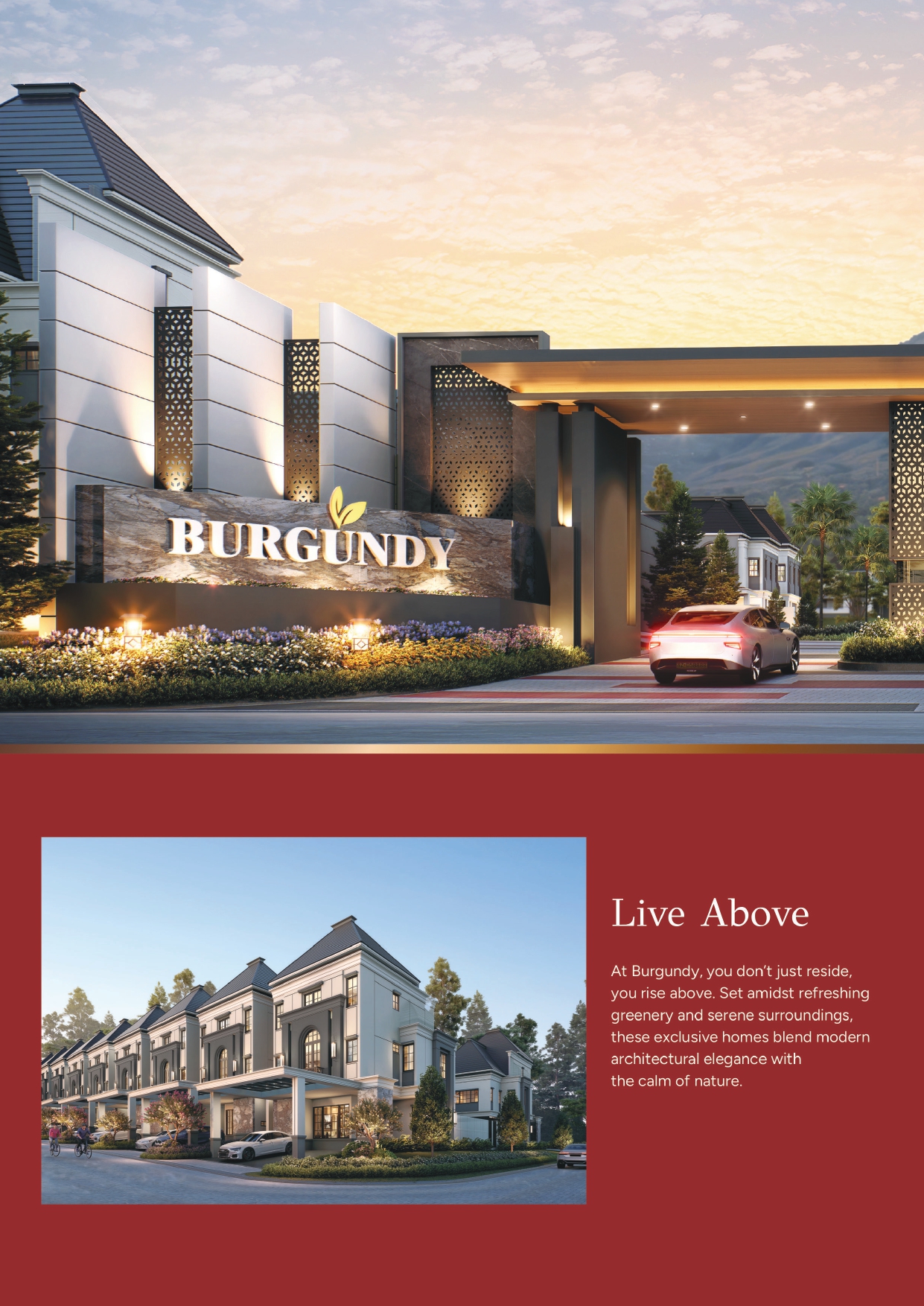 Di Burgundy, hunian bukan sekadar tempat tinggal — melainkan perwujudan gaya hidup yang lebih tinggi. Dikelilingi hijaunya alam dan suasana yang menenangkan, setiap rumah dirancang dengan perpaduan sempurna antara kemegahan arsitektur modern dan ketenangan alami.